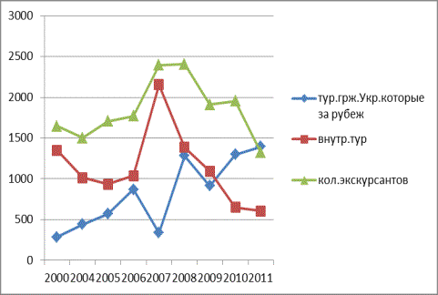 количества экскурсантов, уменьшение соответственно 2,2 и 1,2 (Рис.1.1). При