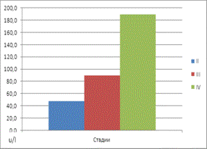 третьей стадии прогрессирования злокачественного процесса наблюдалось повышение