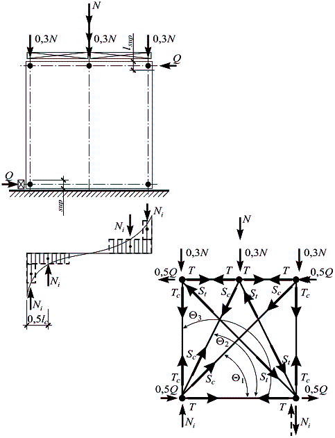 форма стержневой модели, идентифицирующей сложный характер работы стен, с целью