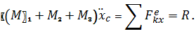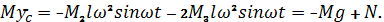 теорему о движении центра масс механической системы в проекции на ось у: ![]()