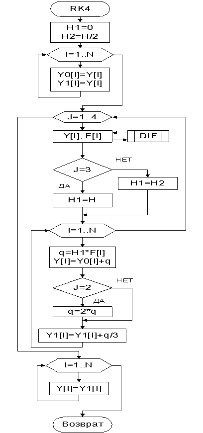 На рисунке 2 показана головная программа, на рисунке 3 показана процедура по вычислению методом Рунге-Кутта 4-го порядка.