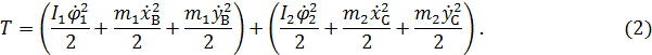Кинетическая энергия всей машины равна сумме кинетических энергий передней и задней секций