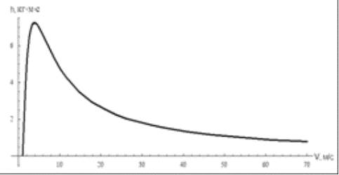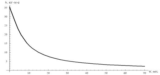 зависимости h от V при t=0 м
