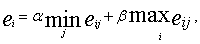 как аддитивную, относительно взвешенных наибольшего и наименьшего результатов: