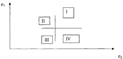 На этом рисунке в поле оценок вариантов i в зависимости от внешней ситуации ei, или ei2 выделена произвольно точка, через