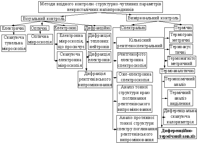 блок-схему класифікації методів дослідження некристалічних напівпровідників.