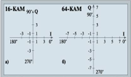 модуляції 16 – КАМ (а)та 64 – КАМ (б)