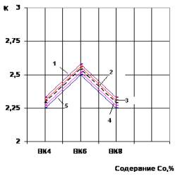 виде зависимости коэффициента сравнительной стойкости от содержания Со показаны