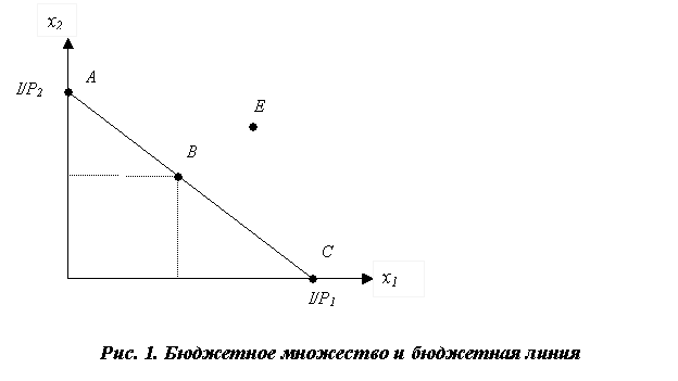 потребительских наборов при ценах (P1, P2) и доходе I называется бюджетным множеством данного