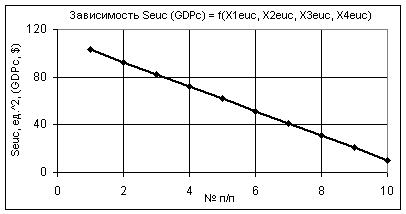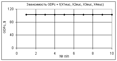значениях переменных Х1еuc = 1, Х2еuc = Х3еuc = 1…0,1, Х4еuc = 0,99…0,1 зависимость GDPc уменьшается в 70 раз с 102,86 до