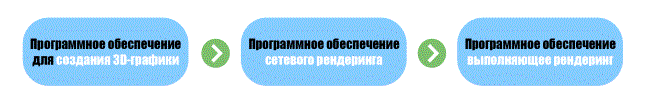пользователь запускает процесс рендеринга для созданной 3D-графики. Данный процесс состоит из трёх этапов: