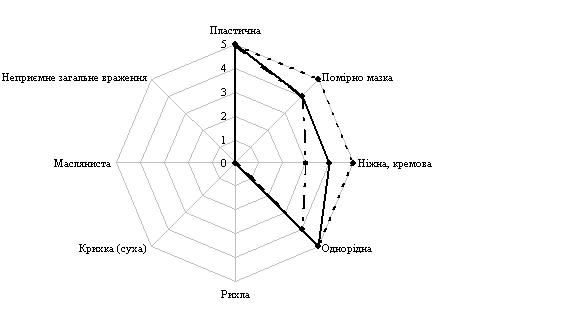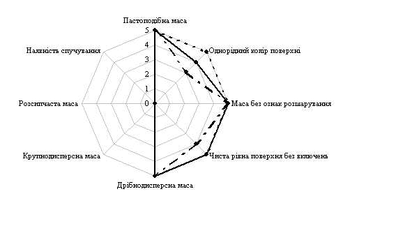 інтенсивність «пластичності». У сирковій пасті з пастернаком дескриптори