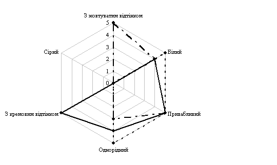 свідчать профілі кольору всі три дослідні зразки мали привабливий, білий колір