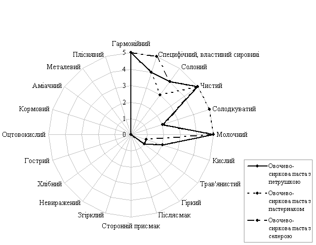 використовували профільний метод [14]. Овочево-сиркові пасти оцінювалися експертами-дегустаторами