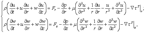 где u, w – радиальная и осевая составляющие скорости соответственно,