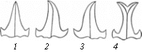 1 – не загнута; 2 – загнута вліво; 3 – загнута вправо; 4 – хвіст ластівки