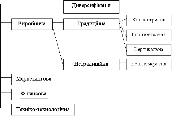 основного бізнесу, яким підприємство займалось досі, проникнення в нові галузі та сфери економіки.