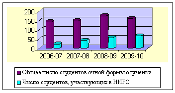 диаграмма по участию студентов кафедры в выполнении НИРС. Следует отметить, что