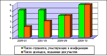 участие в ежегодных внутривузовских и внешних студенческих конференциях.
