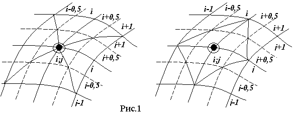 определяются в определенных узлах разностной сетки, методом криволинейных сеток