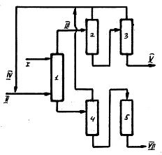 заполненного насадкой. В нижнюю часть контактора подаётся смесь свежего (поток II) и регенерированного (поток IV) растворителя. Из – за разности плотностей сырьё и