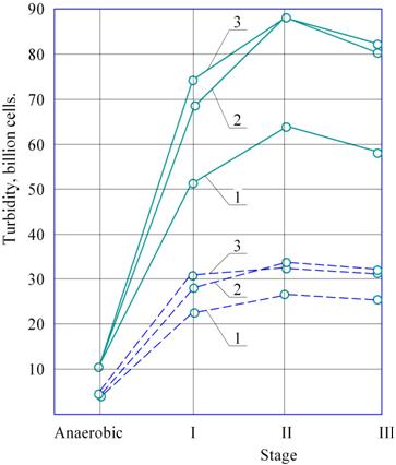 stages of cultivation, where the initial was the anaerobic stage. The obtained