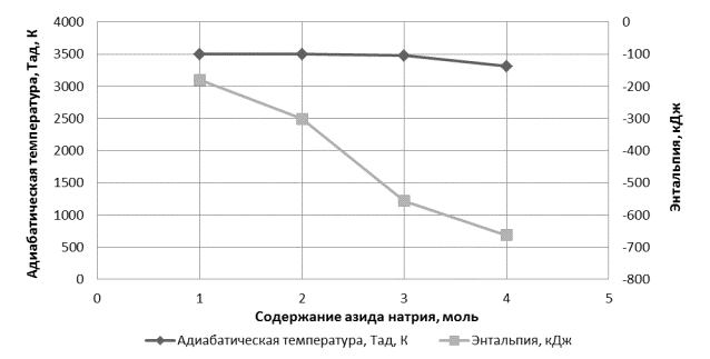 адиабатической температуры горения и энтальпии системы приведены на рисунке 1.