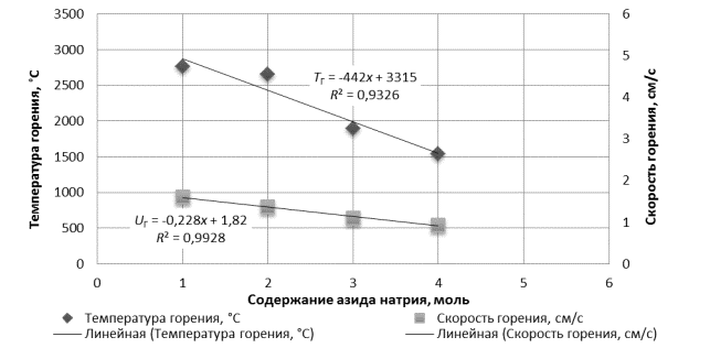 зависимости температуры и скорости горения смеси «тетрафторборат аммония – азид