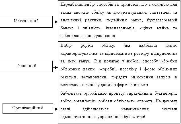 На рис. 1 представлено три етапи організації бухгалтерського обліку :