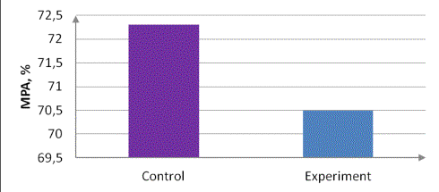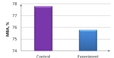 of experimental sample accounts for 75,8%, which is 2,0% lower than the control