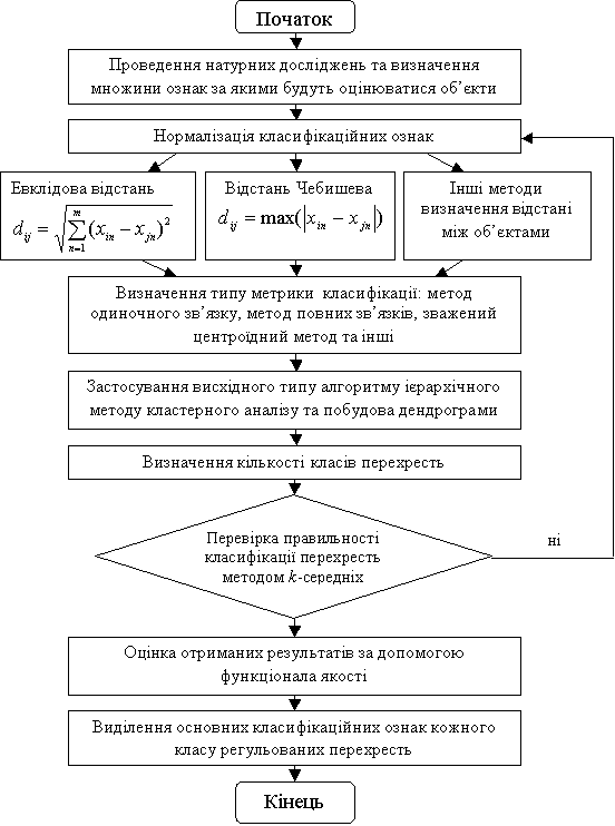 Рис. 1. Алгоритм методу формування груп перехресть на основі аналізу їх сукупності