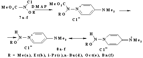 Нами установлено, что взаимодействие N-хлор-N-алкоксиуретанов 7 с ДМАП является довольно общим способом синтеза хлоридов 1-N-алкоксиаминопиридиния 8. Это подтверждается