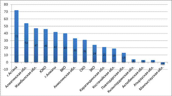 область (47%), Южно- Казахстанская область (46%). При этом тремя регионами, на