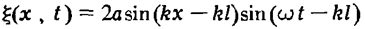 массой m установилась стоячая волна вида ξ = a·cos(kх)·cos(ωt). Определить энергию упругих колебаний, заключенную