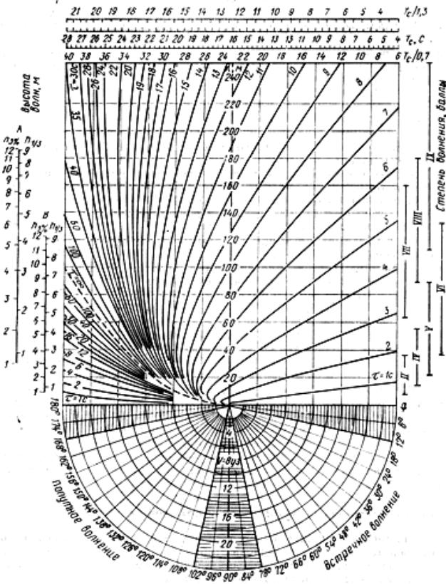 Определить значение курсового угла к волне φ морского судна, идущего при осадке Т=3,76