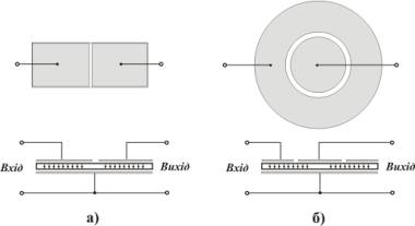 диска з електродами у вигляді концентричних кіл (рис. 3, б).