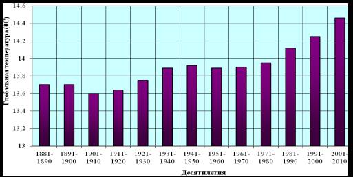 повышалась со скоростью 0,28 ºС каждые 10 лет, наибольшее потепление