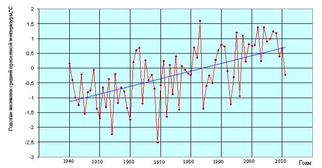 среднего значения за 1961-1990 гг., т.е. данный период относится как самому