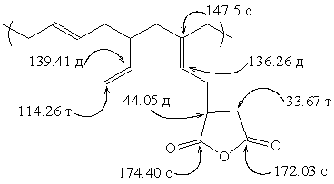 Результаты ЯМР13-спектроскопии свидетельствуют, что присоединение малеинового ангидрида