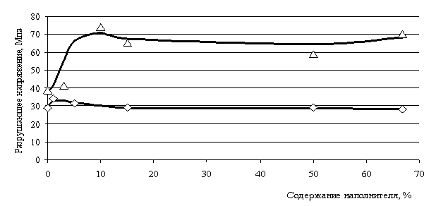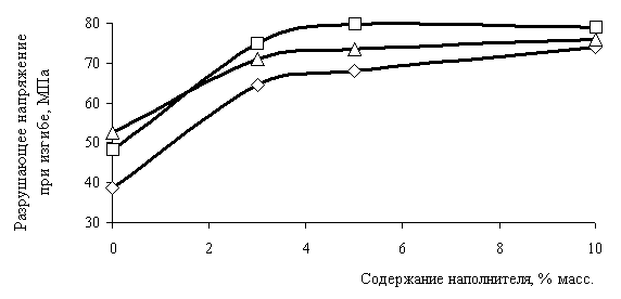 увеличении содержания наполнителя до 10% различий в разрушающем напряжении при