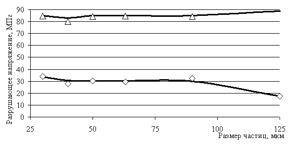 до 125 мкм приводит к увеличению разрушающего напряжения при изгибе на 70-80%,