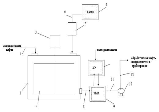 обработки высоковязкой нефти с использованием присадки ТХФК и высокочастотного