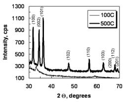 respectively. The films produced are polycrystalline, showing the wurtzite ZnO