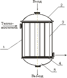 1. Трубчатый реактор: 1-корпус; 2-крышка; 3-трубки с катализатором; 4-трубная