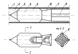 юбка; 7-нанесенный слой катализатора; 8-штанга.