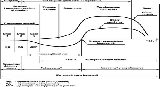 освоєння нової техніки (технологій). Створення новації проходить три етапи: фундаментальне дослідження ; прикладні дослідження ; дослідно-конструкторські роботи.