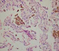(лімфогістіоцити та еозинофіли), коричневі включення в альвеолах. Забарвлення