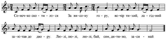 ласкавого, наспівного, ліричного, святкового, колискового характеру, такі як: