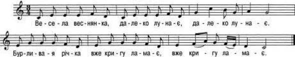 музиці. Завдяки практично ідентичному діапазону, українські народні пісні легко