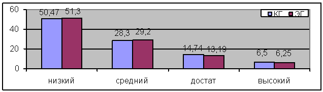 экспериментальным группам, отражающей общее распределение студентов по уровню